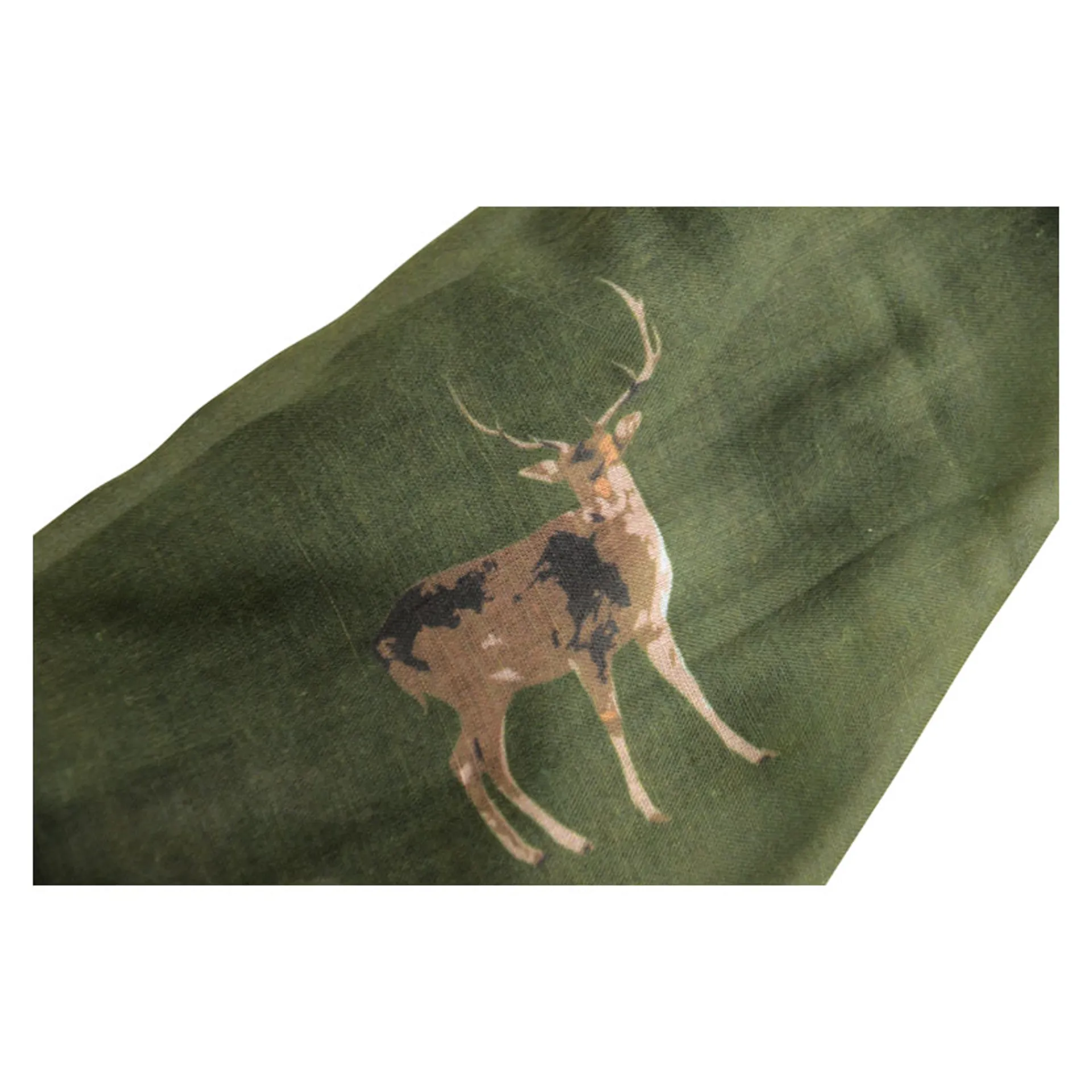 Hy Equestrian Stag Print Scarf in Forest Night Green