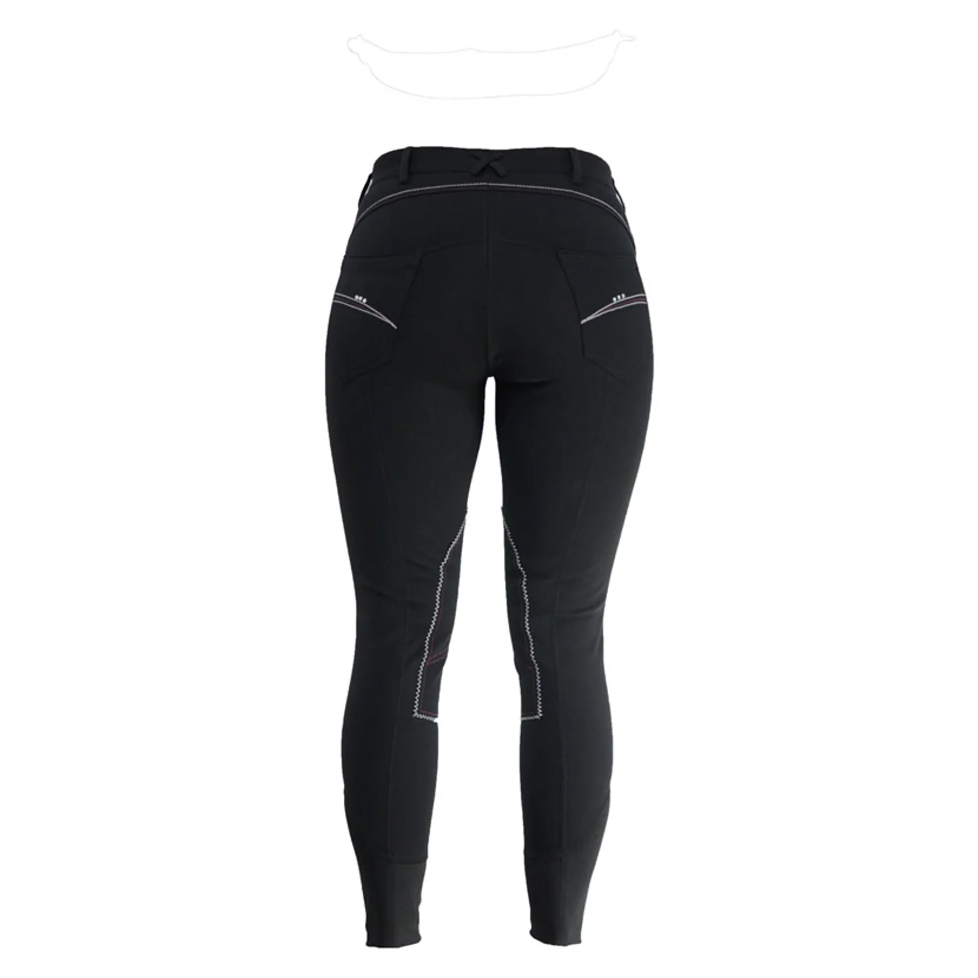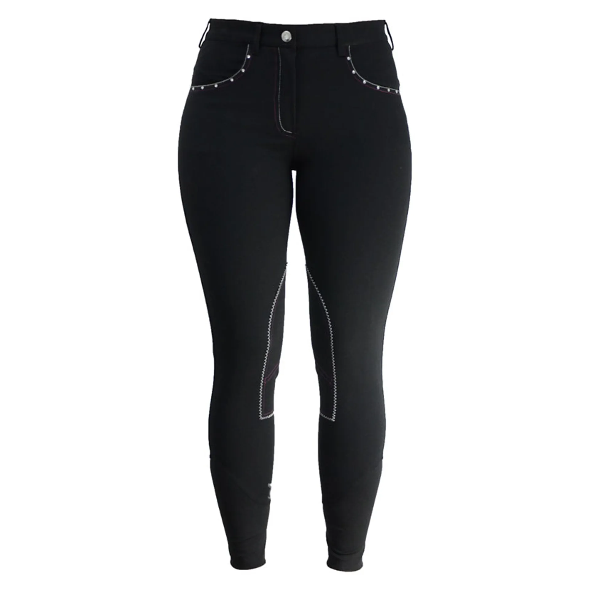 Dazzle in these breeches with contrast berry and white stitching, featuring crystal diamantes on the front and rear pockets.