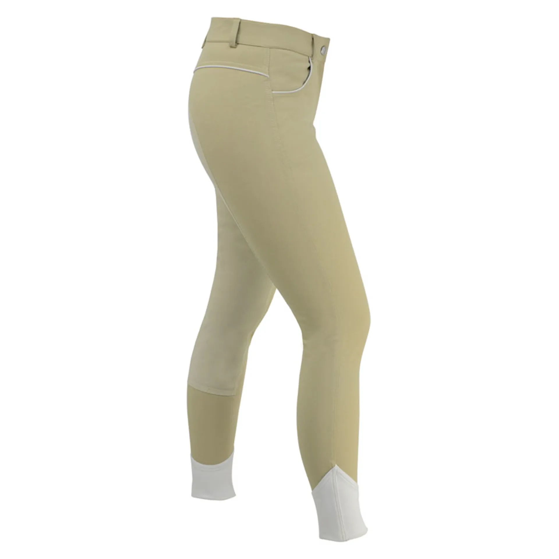 Featuring coloured binding around the front pockets and back, these breeches look both smart and professional. Complete with belt loops and elastic anti-bulk stretch ankle hems, the breeches are finished with a hy embossed button.