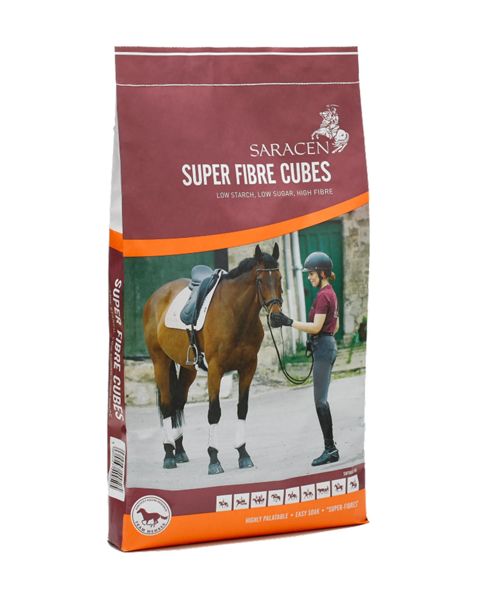 Saracen Super Fibre Cubes are a partial hay replacer ideal for any horse requiring a low starch, high fibre feed which may need a ration that is easier to chew & digest. This is a clean, dust free feed which is high in fibre making it suitable for horses & ponies prone to laminitis. Super fibre has been used in the mixture along with soya oil to provide a slow release form of energy that also does a great job of maintaining a healthy digestive system.