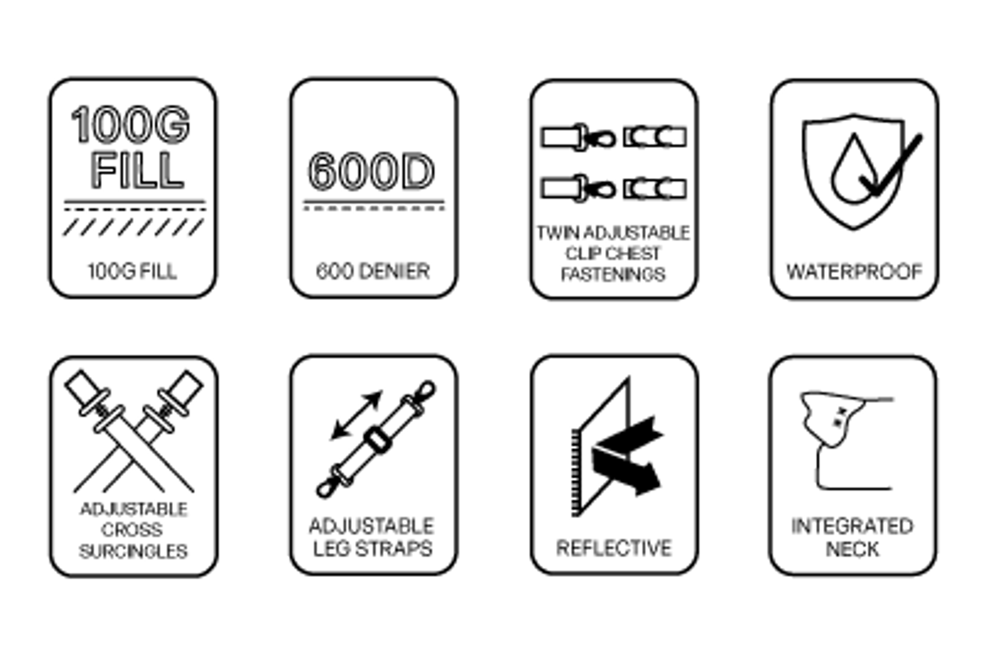Completed with Empra cross surcingle’s, twin buckle clip chest fastenings and adjustable leg straps to keep the rug securely in place.
