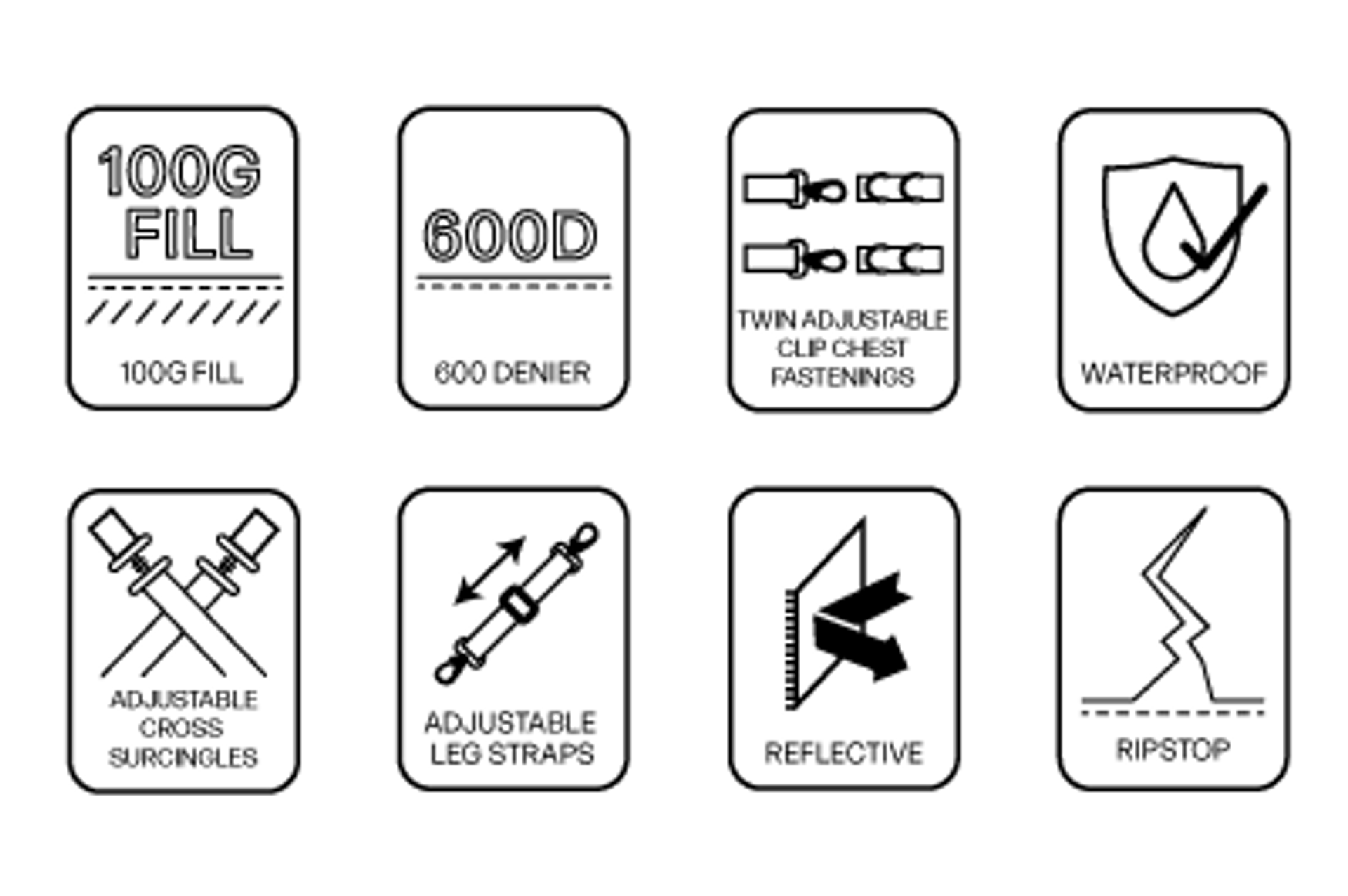 Completed with Empra cross surcingle’s, twin buckle clip chest fastenings and adjustable leg straps to keep the rug securely in place.