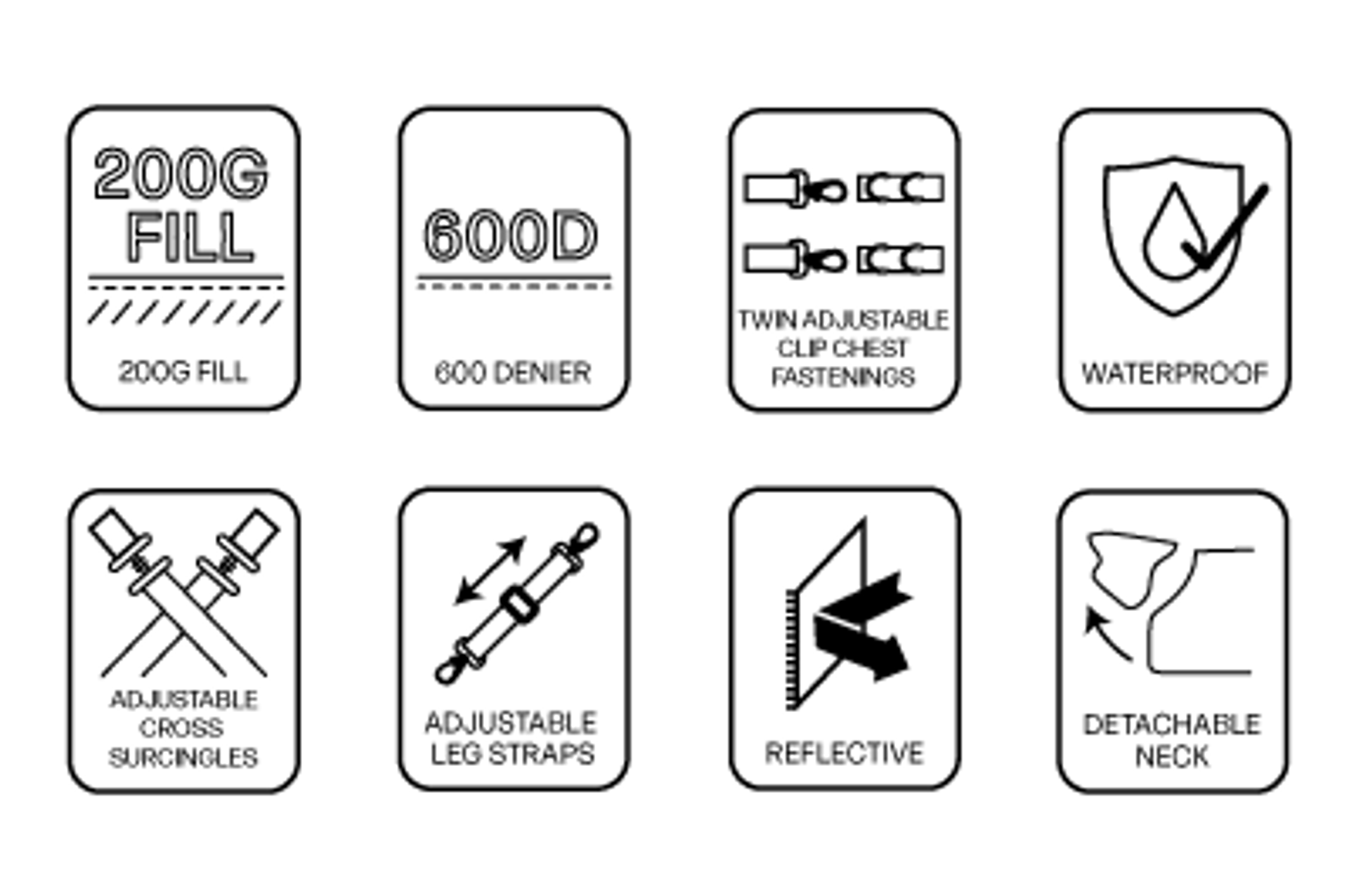 Completed with Empra cross surcingle’s, twin buckle clip chest fastenings and adjustable leg straps to keep the rug securely in place. Finished with reflective StormX logo to help spot your horse or pony on dusky evenings and generous tail flap for extra protection.