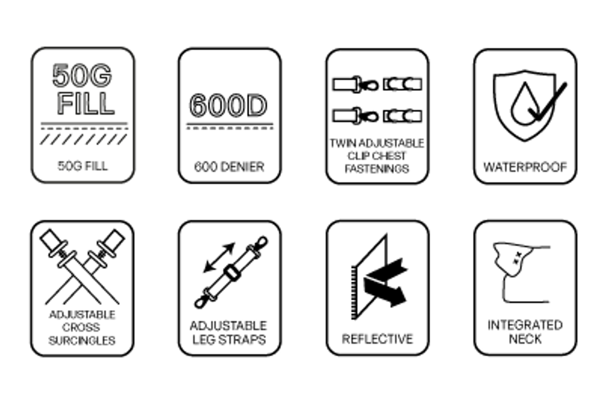 • Twin buckle clip chest fastenings