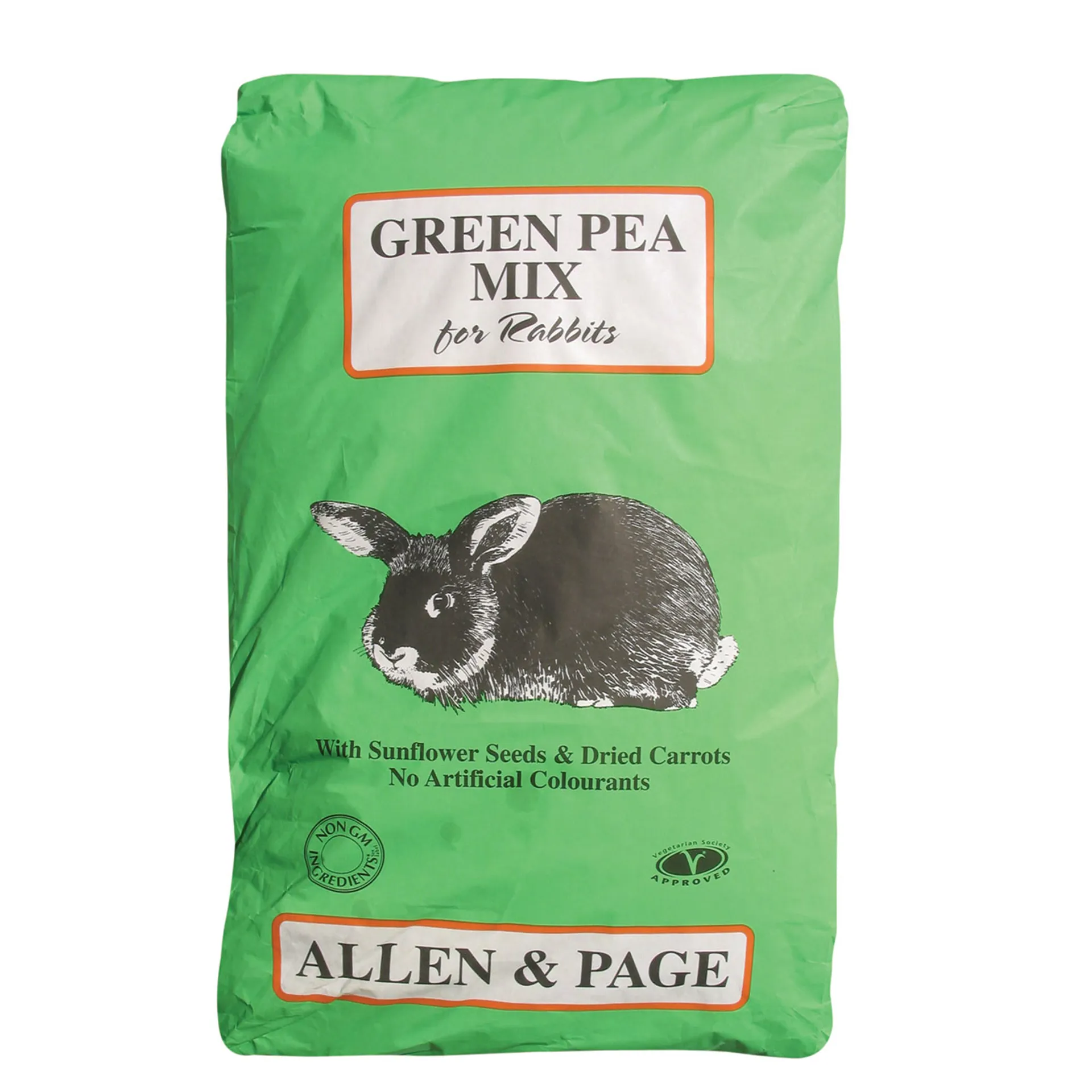 Allen & Page Green Pea Rabbit Mix is designed for pet rabbits or as a maintenance diet for any adult rabbit. An interesting and palatable mix made from high quality ingredients including barley, maize, oats, peas, sunflower seeds, real carrot pieces and mint. All of these interesting ingredients help improve your pets' digestive health & increases the palatability of the food itself.