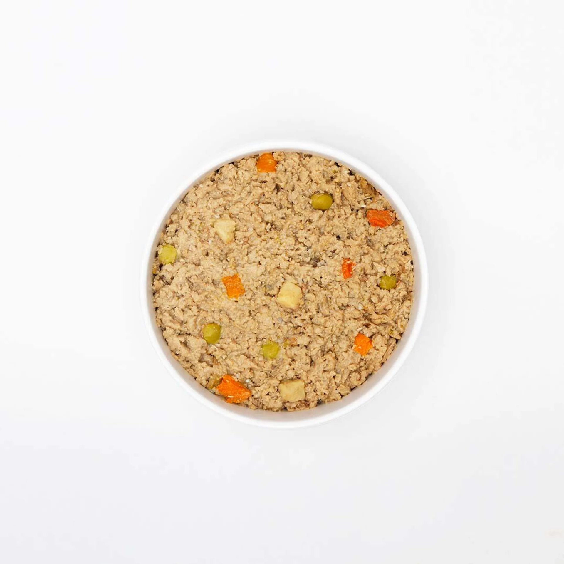 Freshly Prepared Salmon (66%), Potato Meal (5%), Dried Peas (0.9% equivalent to 3% peas), Dried Carrots (0.4% equivalent to 3% carrot), Dried Potato (0.5% equivalent to 2% potato), Minerals, Dried Broccoli, Dried Tomato, Dried Apple, Rosemary (0.1%), Parsley (0.1%), Oregano (0.1%), Thyme (0.1%), Fish Oil, Sunflower Oil, Dried Seaweed, FOS, Glucosamine (0.004%), Chondroitin (0.002%), Cranberry, Yucca Extract, Yeast Extract.