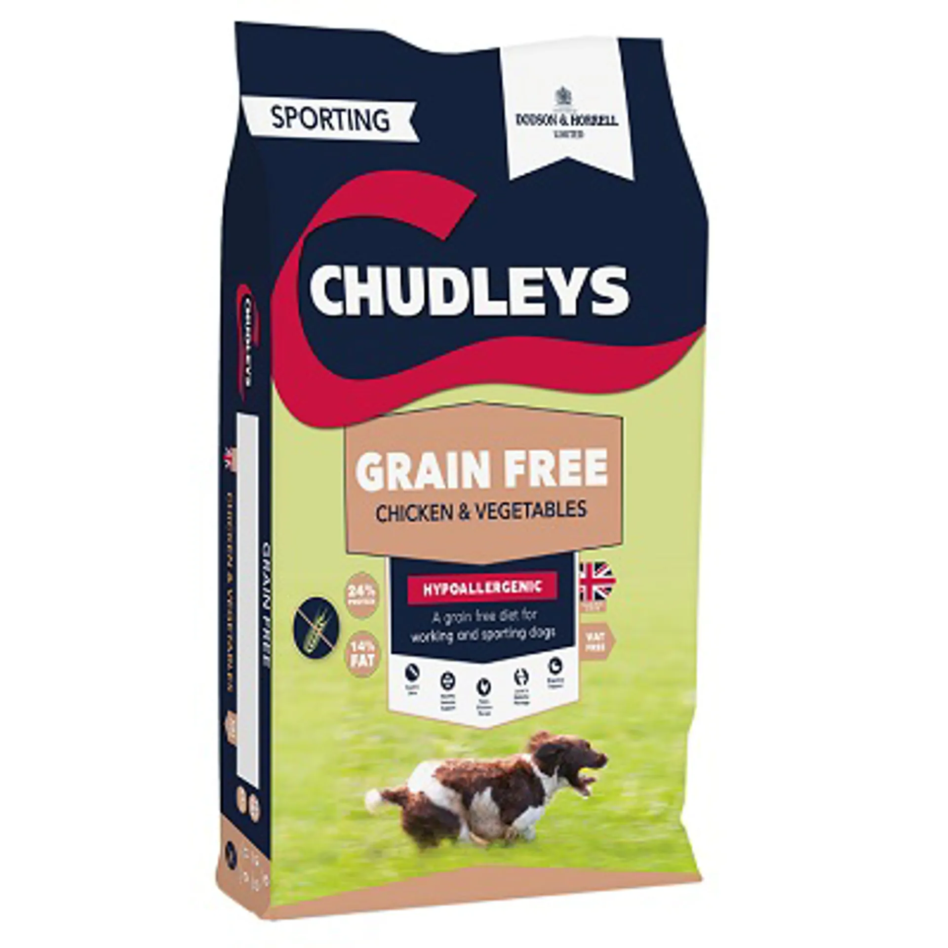 Chudleys Grain Free Dry Dog Food. This is Grain Free and Hypoallergenic Chicken and Vegetables for working and sporting dogs.