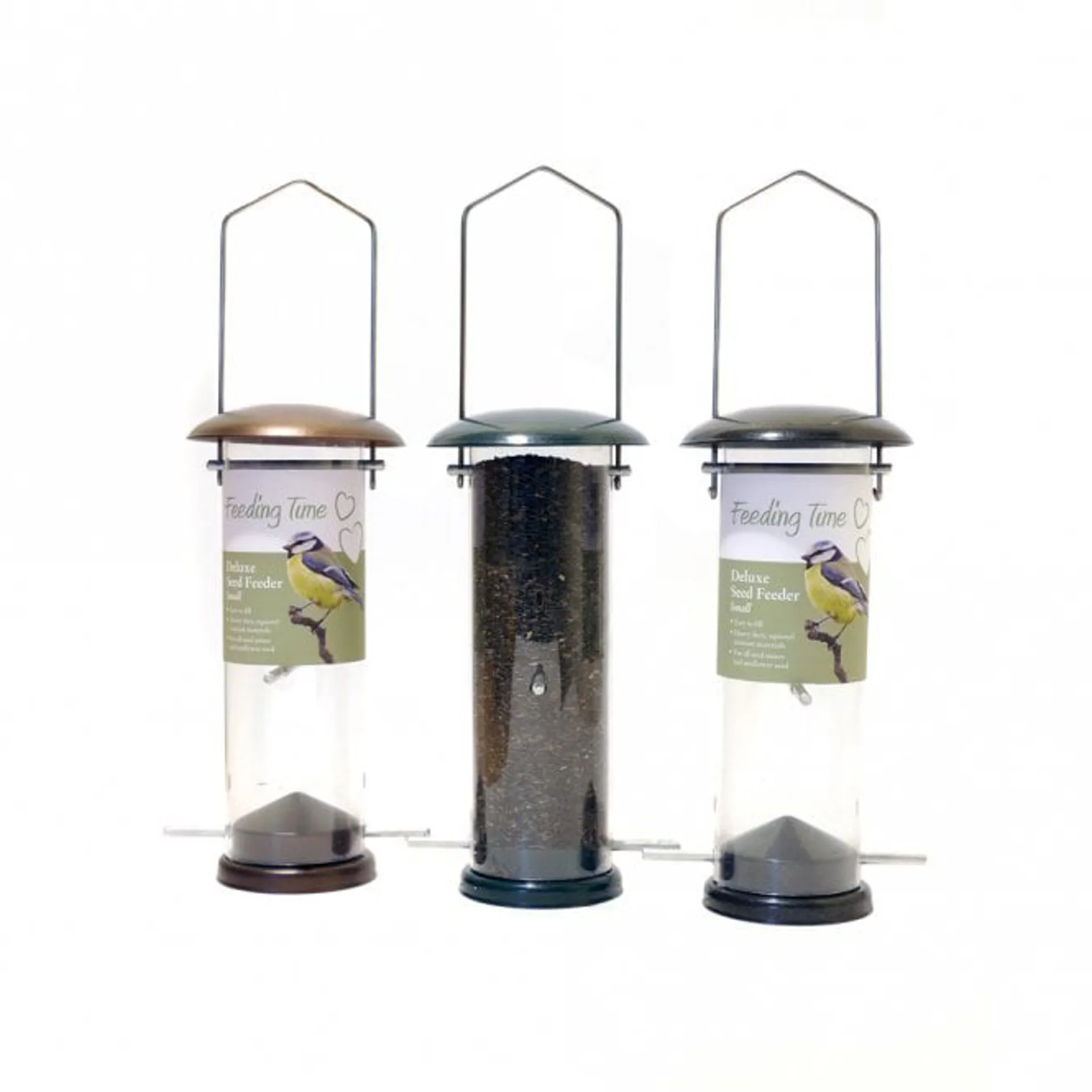 Our Deluxe range continues with a Deluxe Fat Ball Feeder (made from squirrel-busting 2.5mm wire) and a Nyjer Seed Feeder. Both of these are finished in same quality paint finishes as the Seed and Nut Feeders.