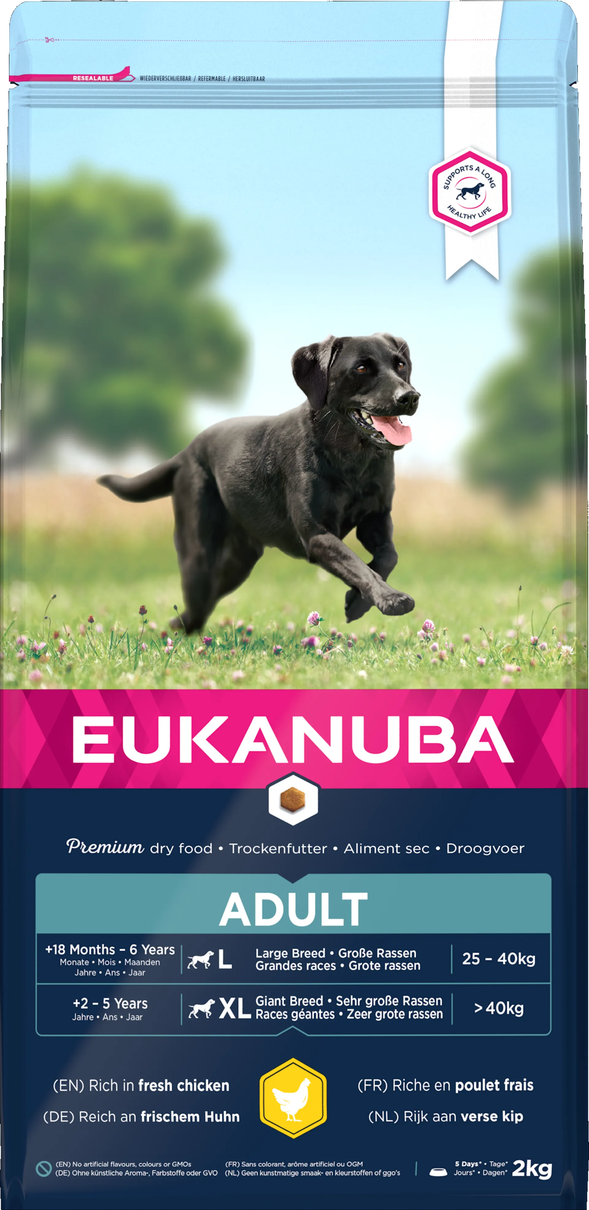 Question(s) answered about Eukanuba Adult L Chicken 4x2kg
