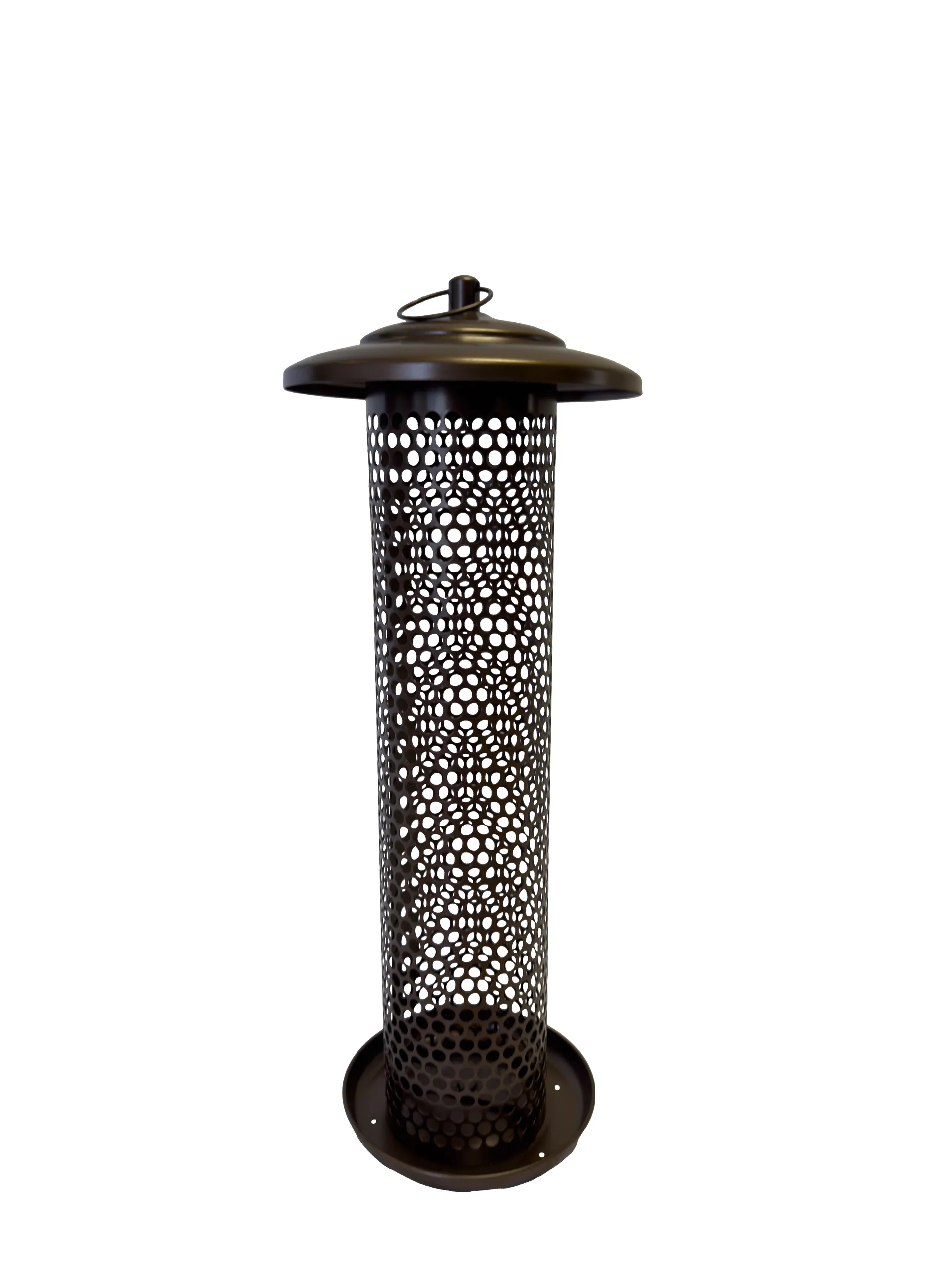 Johnston & Jeff Manhatten Peanut Feeder. An exceptionally well-made, strong, large peanut feeder. Also suitable for Suet Pellets. To fill, just twist the lid, then replace when done. Hang at least 1.5m [5'] from the ground, and away from trees or bushes for protection. Clean and disinfect feeders and tables regularly.