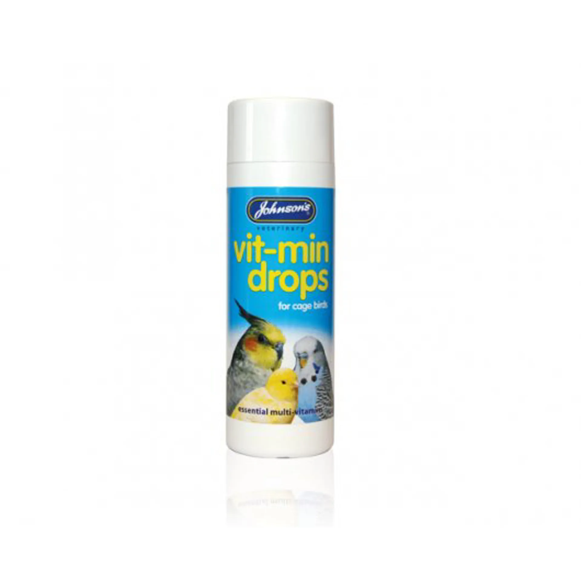 JVP Vit-Min Drops for Caged Birds. Essential daily multi-vitamin supplement for all cage birds. Promotes and maintains good health and resistance to ailments. Particularly good for poor condition or recovering from illness. Beneficial before and during breeding.