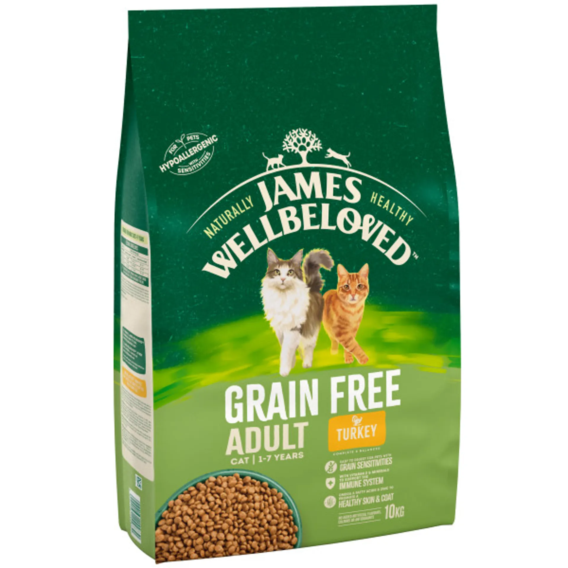 James Wellbeloved Adult Cat Turkey Grain Free. Specially crafted grain free cat food for pets who are sensitive to cereals. We've taken natural nourishing ingredients and combined them with flavourful turkey for highly digestible, quality protein. Then, using all our knowledge and experience, we've added all the vitamins and minerals your pet needs to stay happy, healthy and full of life.