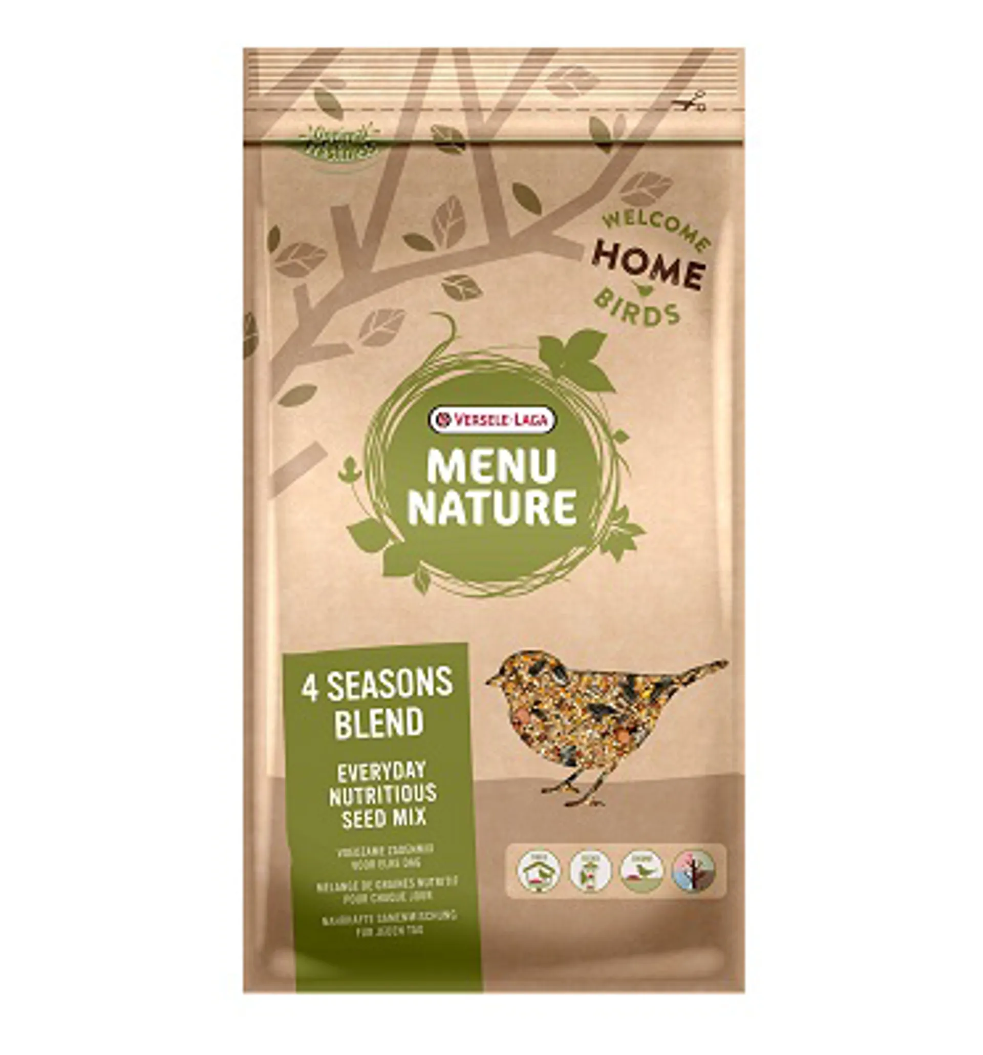 Versele Laga Menu Nature 4 Seasons Blend. Quality mixture with an average protein and fat content. Checked on the presence of ambrosia seed to prevent this parasitic plant from invading your garden. This feed attracts various bird species.