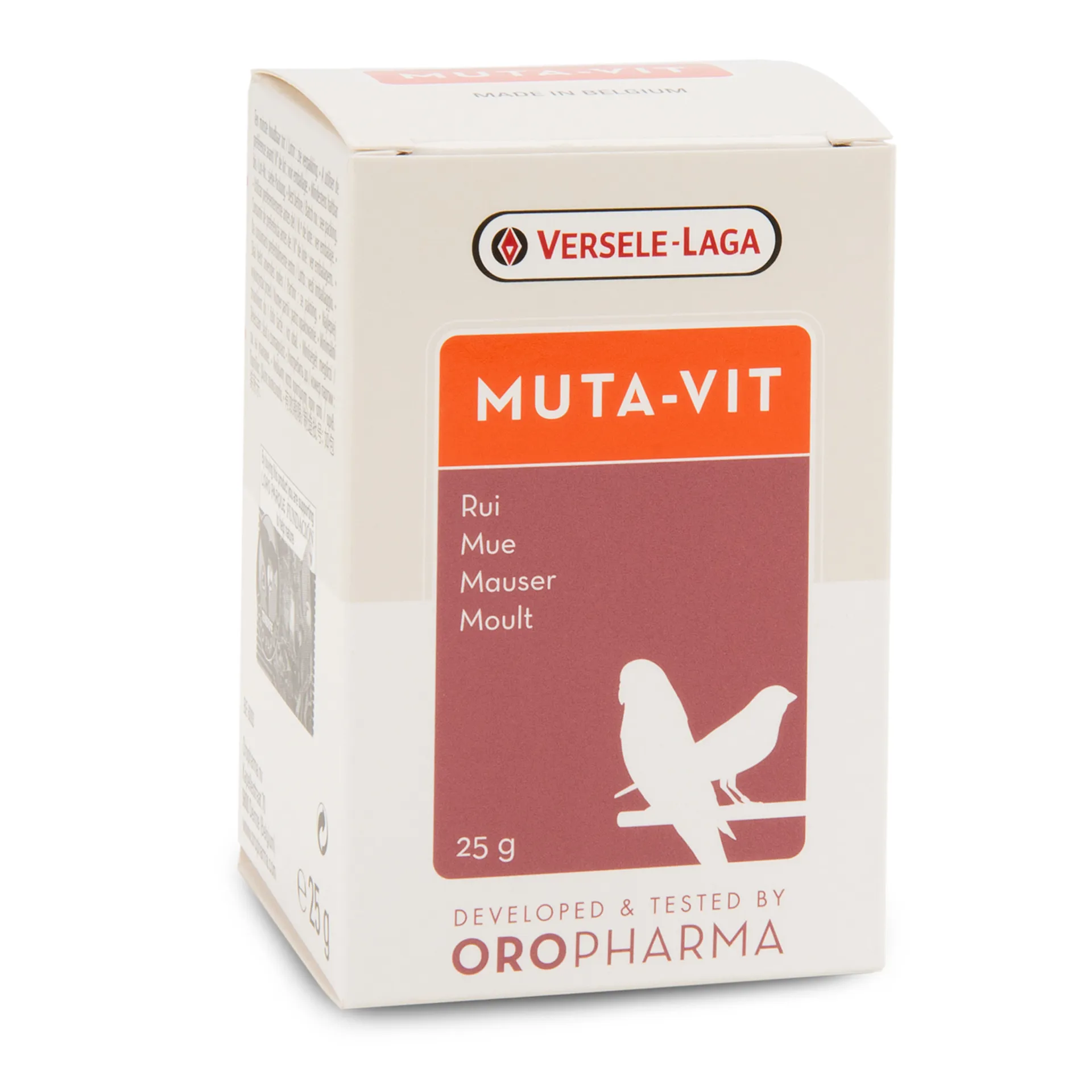 Versele Laga Oropharma Muta-Vit is a special blend of vitamins, amino acids and trace elements, with high content of sulphurous amino acids and biotin. This dietary supplement promotes feather development and condition, strengthens the plumage, protects the liver and ensures an optimal metabolism.