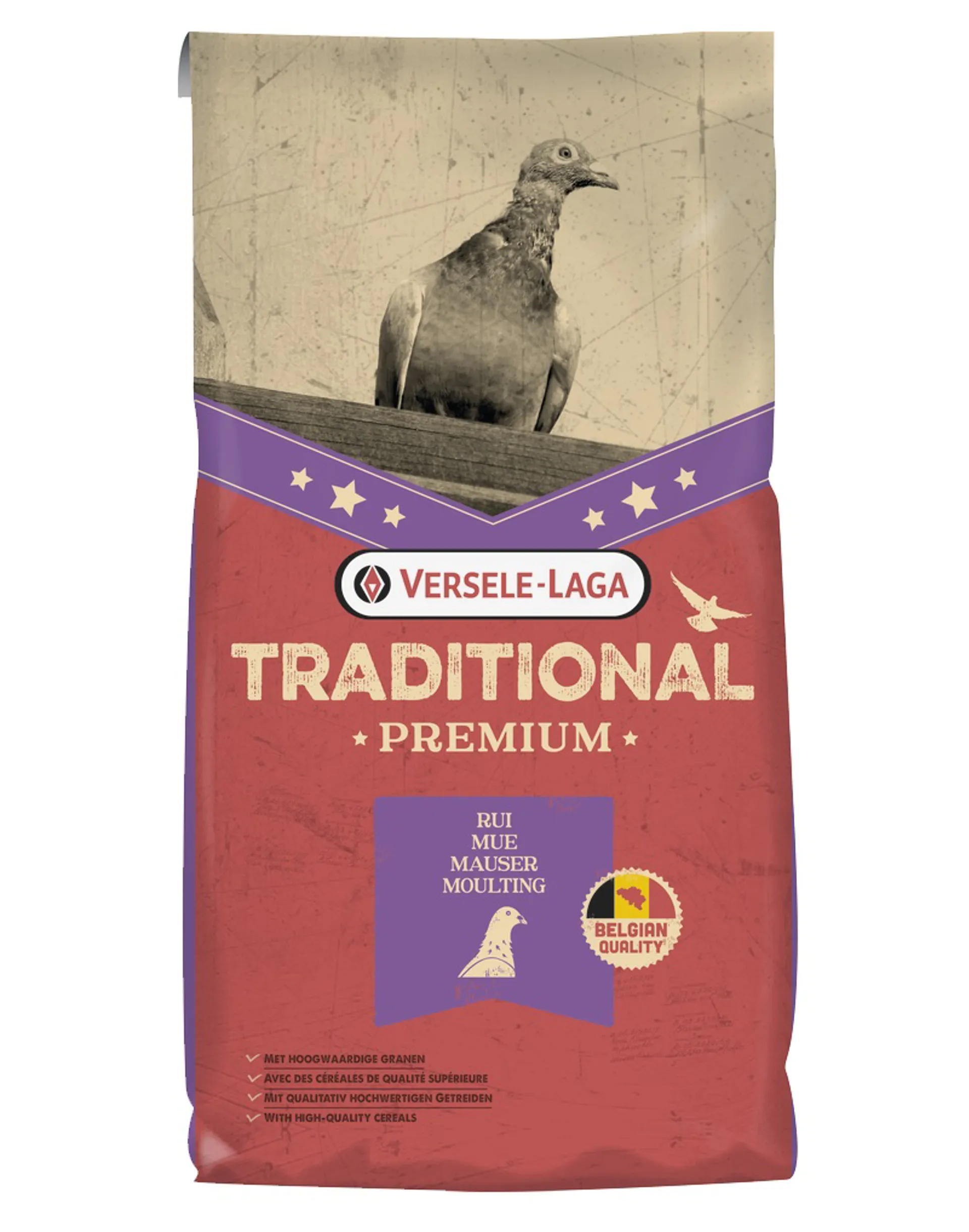 Versele Laga Traditional Premium Petite France Moulting. High-quality moulting mixture with small maize. Varied premium moulting mixture. Contains 24% small yellow cribs maize. Ideal protein content in combination with Success Corn I.C.+.